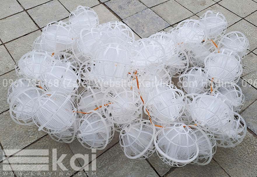 - Tăng diện tích tiếp xúc sinh học: Cấu trúc rỗng dạng cầu giúp mở rộng diện tích bề mặt bám dính vi sinh, tăng hiệu suất xử lý COD, BOD, NH4+.
