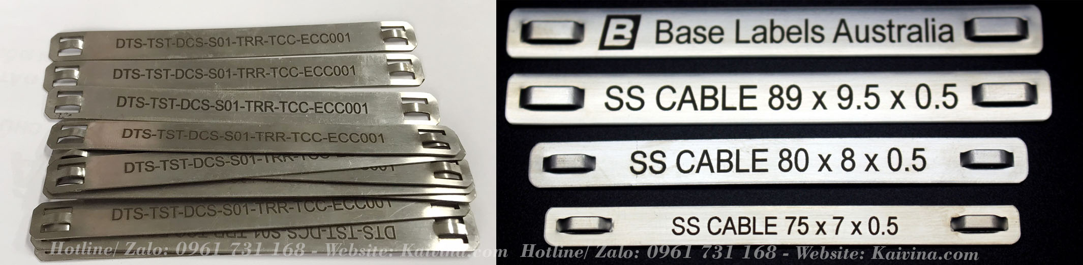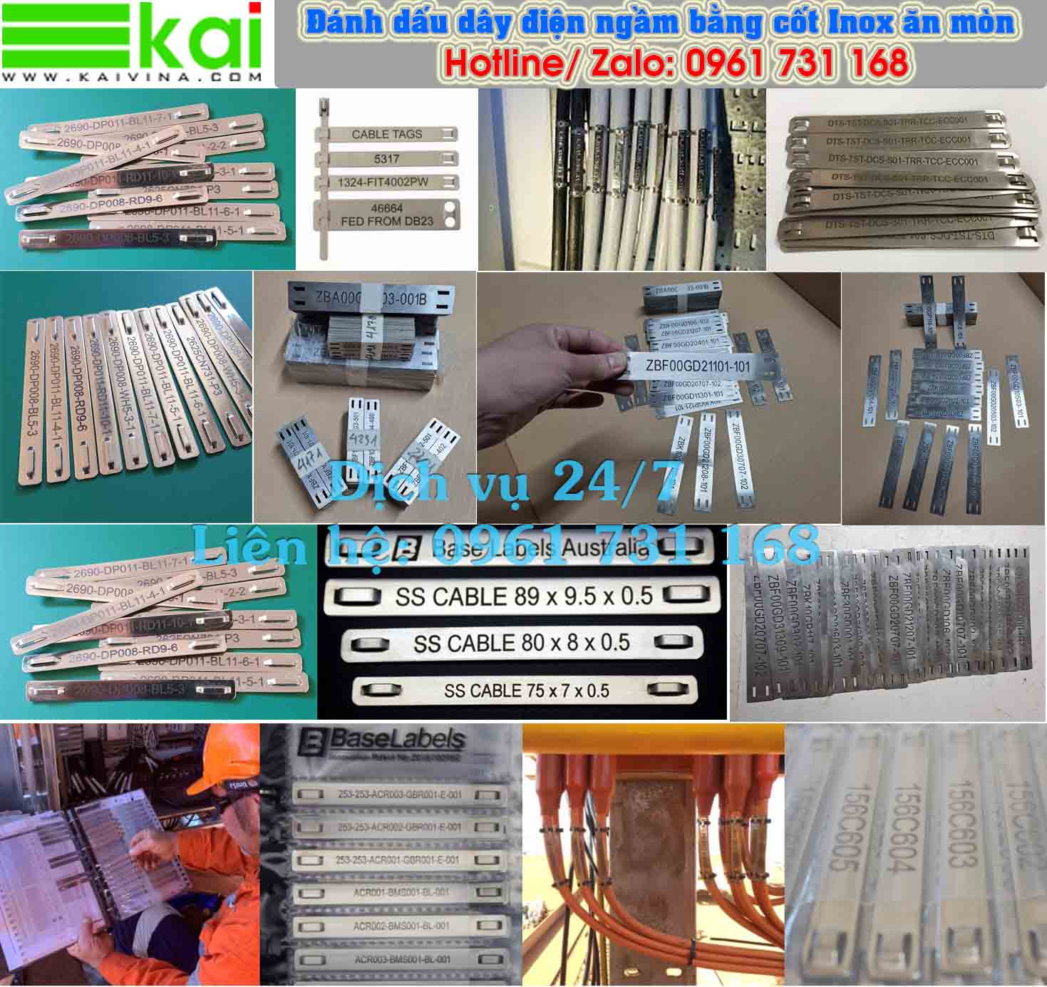 KAIVINA là đơn vị chuyên dịch vụ làm Đầu cốt INOX chống ăn mòn, tem inox, thẻ inox, thẻ tên inox, thẻ TAGNAME bằng INOX, thẻ treo ký hiệu cáp điện bằng INOX, đầu cốt INOX dành cho cáp điện ngầm, thẻ đeo cáp bằng INOX, chữ đánh dấu cáp INOX, nhãn đánh dấu dây điện, đầu COS INOX, khắc laser đầu cos INOX.