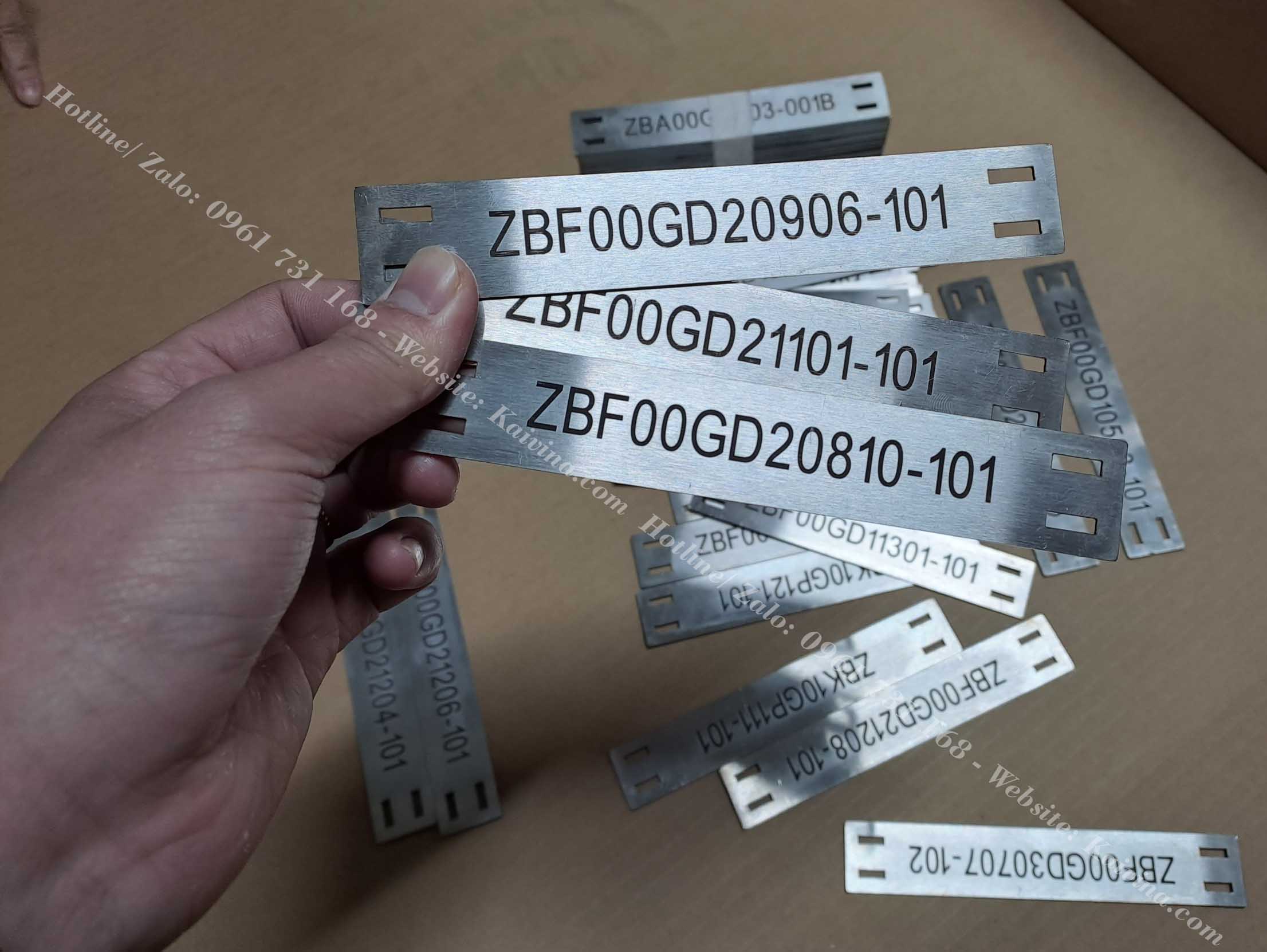- Đặc tính: Khắc được chữ lên cốt inox ( nhãn inox ) đa dạng phông chữ, in đậm nhạt, màu mực lên phông chữ;