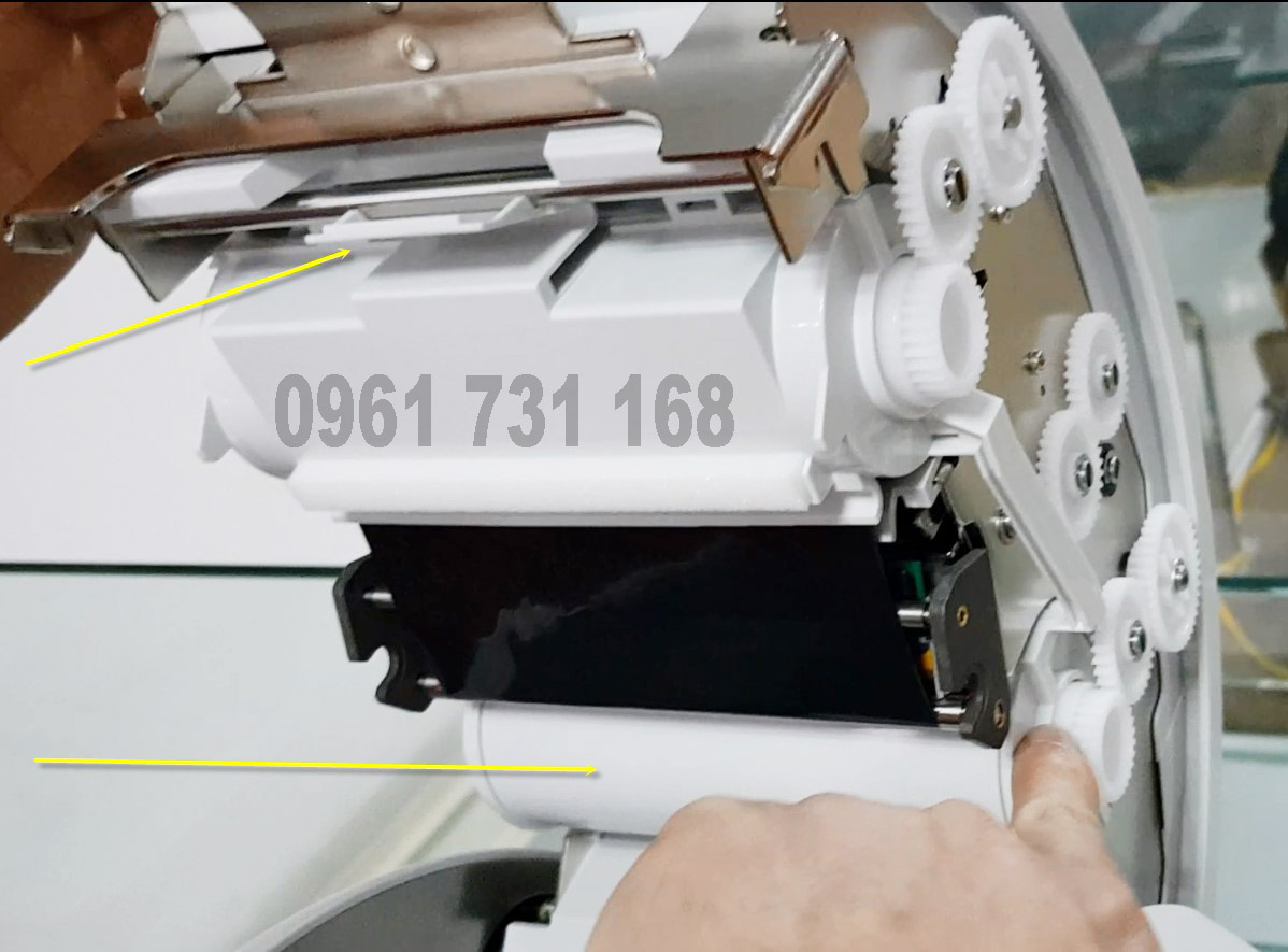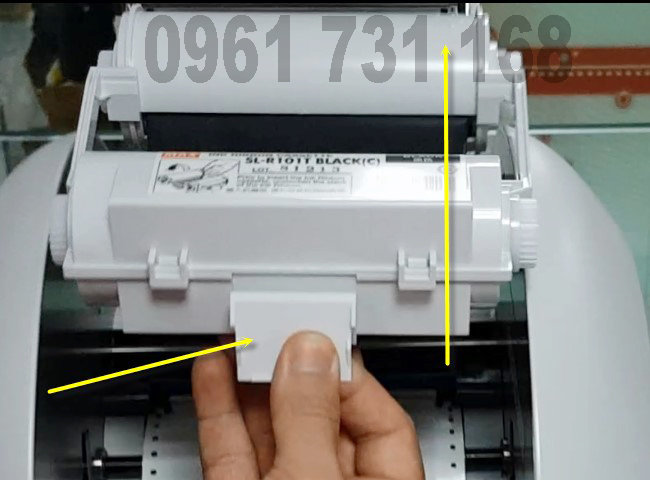 3. Nhấc thanh gạt bụi lên ( thanh chặn nhãn ).