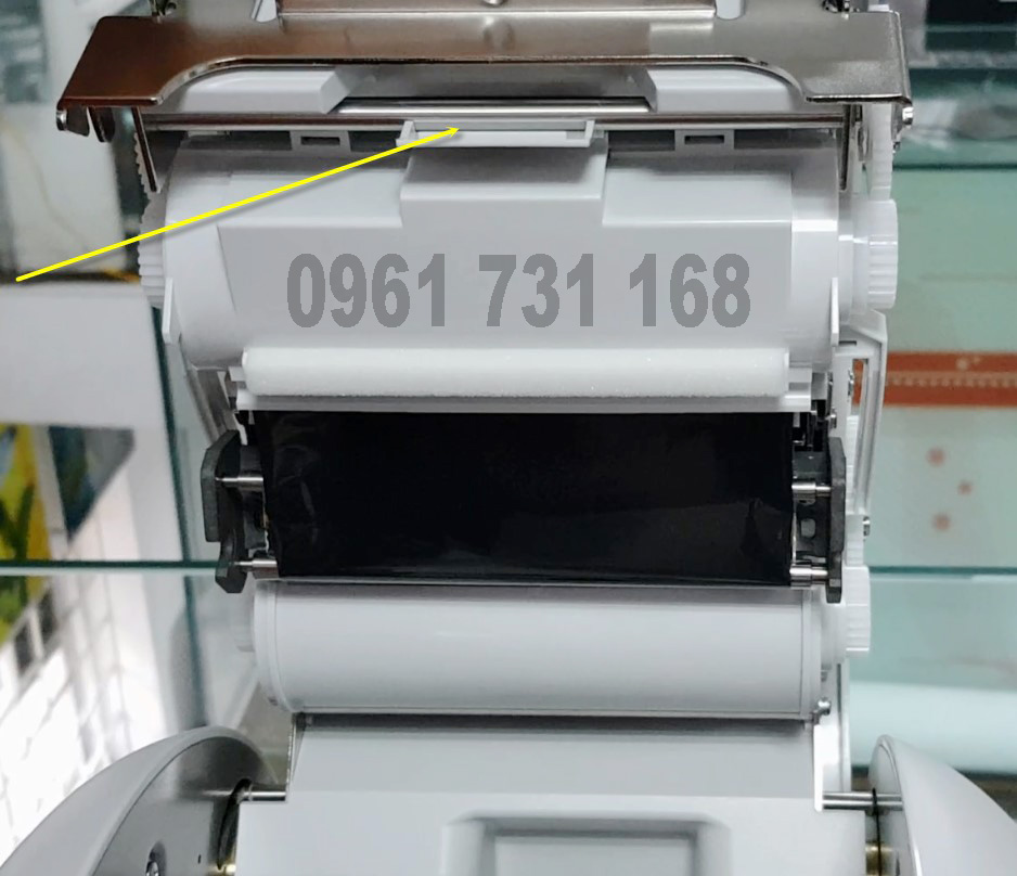 - Đặt cuộn nhãn vào 2 thanh sắt đỡ ở dưới.